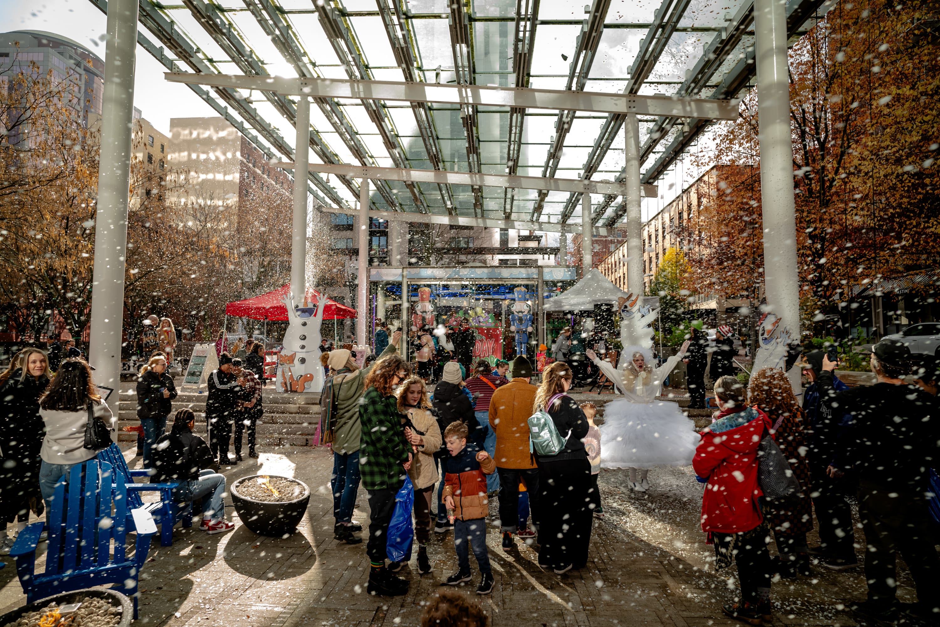 Warm up by one of our fire pits—perfect for relaxing with friends and family. And don’t miss our snowfall surprise! Thanks to a snow machine, snow will drift down three times daily, transforming the park into a true winter wonderland.